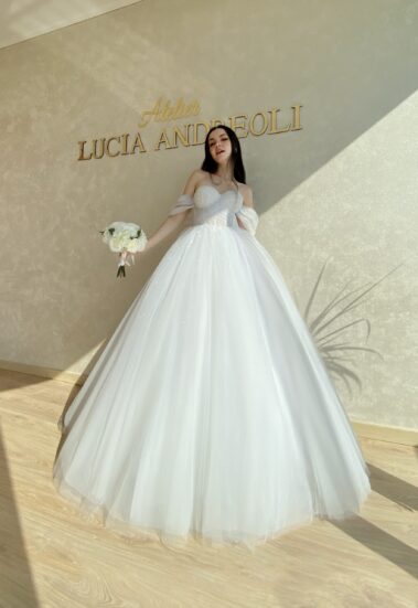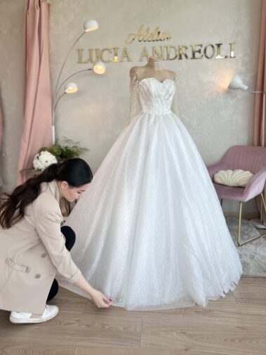 Le spose di Lucia Andreoli hanno la possibilità di ideare e vedere realizzato l’abito da sposa dei propri sogni su misura, grazie ad una minuziosa cura dei dettagli ed una particolare attenzione alle proprie esigenze.
